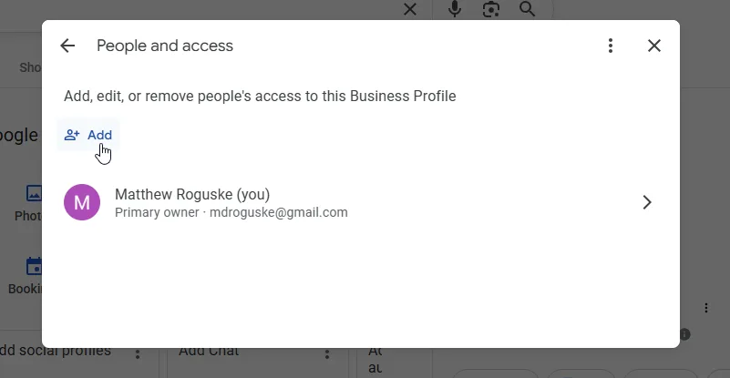 After sending the invite, go back to "People and access." You should see our email listed with a "Pending" status. Once we accept (usually same business day), the status changes to "Manager."
